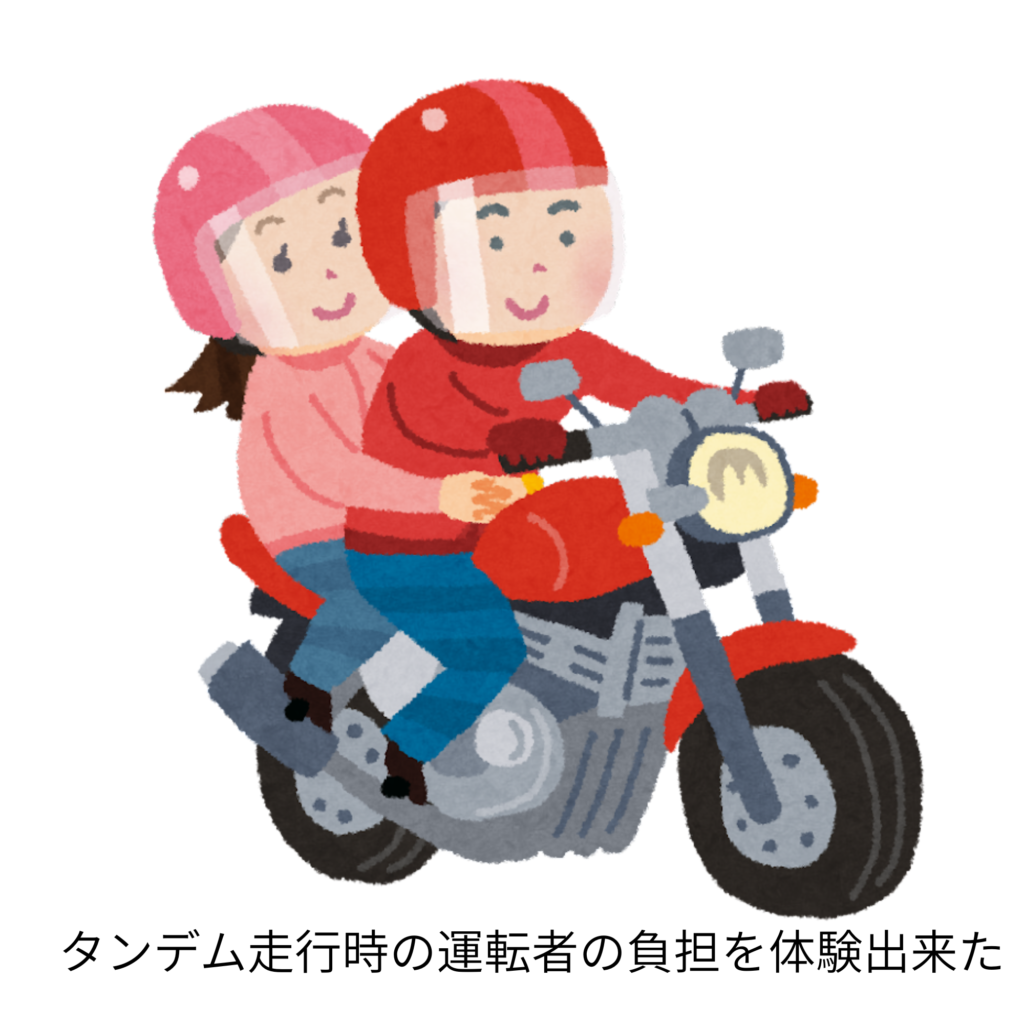 タンデム走行も免許取得後1年間は出来ないため、シュミレータで擬似体験を少しでも出来たことは